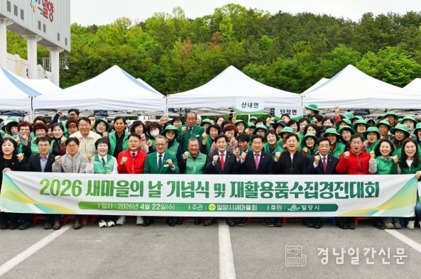 경남일간신문 | 밀양시새마을회(회장 이선동)는 22일 밀양종합운동장에서 새마을운동 제56주년을 맞아 ‘제16회 새마을의 날 기념식’과 함께 ‘우리동네 새단장’ 재활용품 수집 경진대회를 개최했다.