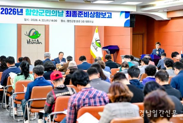 경남일간신문 | 함안군은 함안군민의 화합 대축제인 ‘2026년 함안군민의 날’ 행사가 오는 5월 1일부터 3일까지 3일간 함안공설운동장과 함주공원 일원에서 열리는 가운데, 행사의 성공적인 개최를 위한 ‘2026년 함안군민의 날 최종 준비상황 보고회’를 지난 22일 군청 3층 대회의실에서 개최했다고 밝혔다.