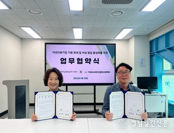 양 기관은 지난 20일 거제여성새로일하기센터에서 업무협약(MOU)을 체결하고, (예비)여성창업자와 사회적기업의 경쟁력 강화를 위한 긴밀한 협력체계를 구축했다.