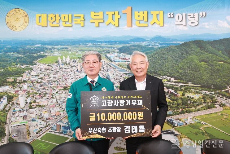 경남일간신문 | 의령군은 지난 21일 부산축협 김태용 조합장이 군을 방문해 고향사랑기부금 1,000만 원을 기탁했다고 밝혔다.