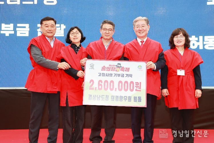 이번 행사에서는 ▲재부의령군향우회 조규성 회장 500만원, ▲재창원특례시의령군향우회 박종철 향우 500만원, ▲재대구경북의령군향우회 이헌주 향우 300만원, ▲재창원특례시의령군향우회(회장 이순자) 250만원, ▲경상남도청의령향우회(회장 허동식) 260만원 등 총 1,810만원이 모금됐다.