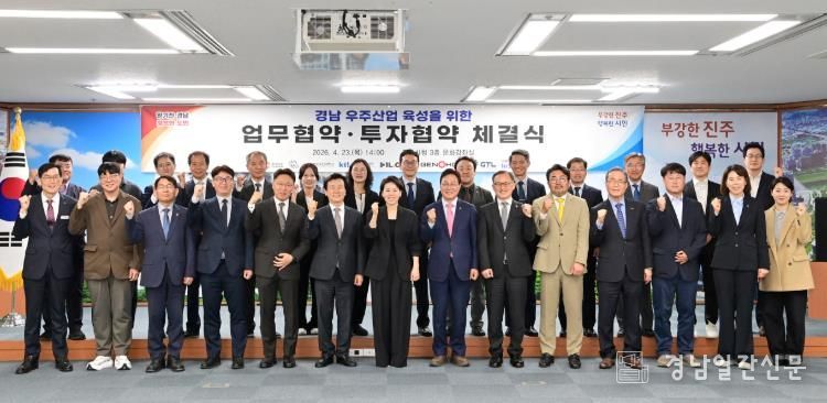 경남일간신문 | 경상남도와 진주시는 23일 진주시청 문화강좌실에서 경상국립대학교, 한국산업기술시험원(KTL), 우주 분야 기업 4개 사와 함께 경남 우주산업 육성을 위한 업무협약 및 투자협약을 체결했다.