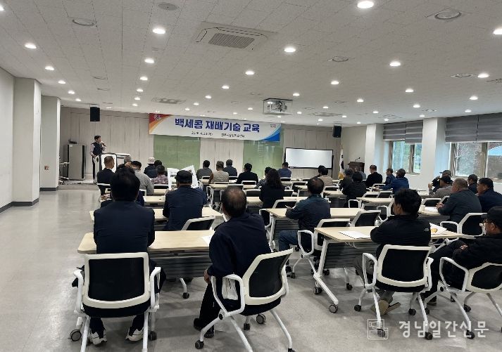 이번 교육은 정종일 경상국립대 교수를 강사로 초청해 정 교수가 직접 개발한 ‘백세콩’의 재배 기술과 관리 요령을 강의했다. 교육 내용은 ▲백세콩의 품종 특성 ▲재배 기술 및 토양관리 ▲병해충 방제 ▲수확 및 저장 관리 등 현장에서 바로 적용이 가능한 실용 기술 위주로 강의해 실질적인 도움이 됐다.
