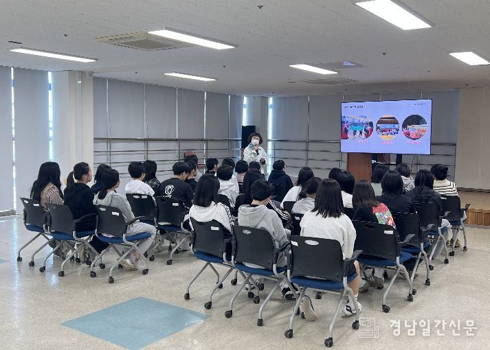 경남일간신문 | 사천시 복지·청소년재단(대표이사 박재령) 청소년수련관은 23일 삼천포여자중학교 1학년 학생들을 대상으로 사천시의회와 연계한 의정체험 및 청소년수련관 체험활동을 운영했다.