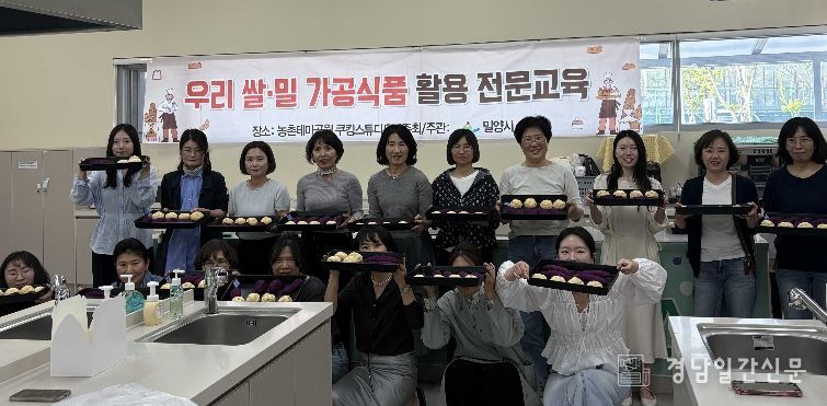 경남일간신문 | 경남 밀양시는 지난 21일과 23일 이틀간 선샤인 밀양 테마파크에서 우리 쌀·밀의 소비 확대와 건강한 식문화 정착을 위해 관내 학교 초·중·고등학교 영양교사 37명을 대상으로 ‘우리 쌀·밀 가공식품 활용 전문교육’을 실시했다.