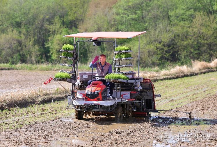 경남일간신문 | 함양군 지곡면 개평리 은혜들에서 4월 23일 2026년 첫 모내기를 시작되며 본격적인 영농철의 시작을 알렸다.