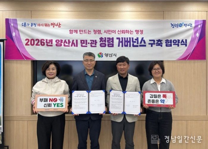 경남일간신문 | 양산시 안전도시국이 청렴 시책의 실효성을 높이고 민·관 협력체계를 공고히 하기 위해 양산소방서 의용소방대연합회와 ‘민·관 청렴 거버넌스’ 업무협약을 체결했다고 밝혔다.