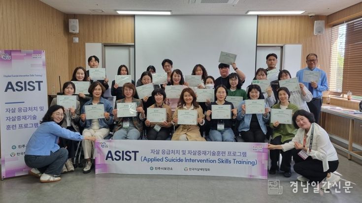 경남일간신문 | 진주시는 한국자살예방협회와 협력하여 지난 23일부터 24일까지 이틀간 ‘2026년 자살중재기술 훈련 프로그램(ASIST) 1회차(33기)’ 교육을 성공적으로 마무리했다고 밝혔다.
