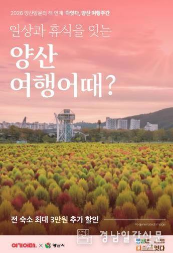 경남일간신문 | 양산시는 ‘2026 양산방문의 해’를 맞아 당일형 관광에 치중된 여행 패턴을 관내에서 하룻밤 머무는 ‘체류형 관광’으로 전환하면서 지역 관광 산업에 활력을 불어넣기 위해 추진한 숙박 할인 프로모션 ‘다잇다, 양산 여행주간’이 관광객들의 높은 이용률 속에 개시 일주일 만에 종료됐다고 밝혔다.