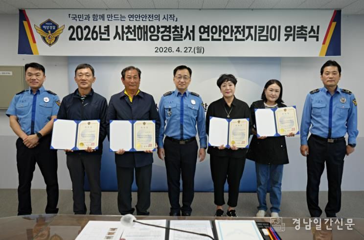 경남일간신문 | 사천해양경찰서는 27일 연안사고 예방을 위해 선발된 ‘26년도 연안안전지킴이” 4명을 위촉했다고 밝혔다.