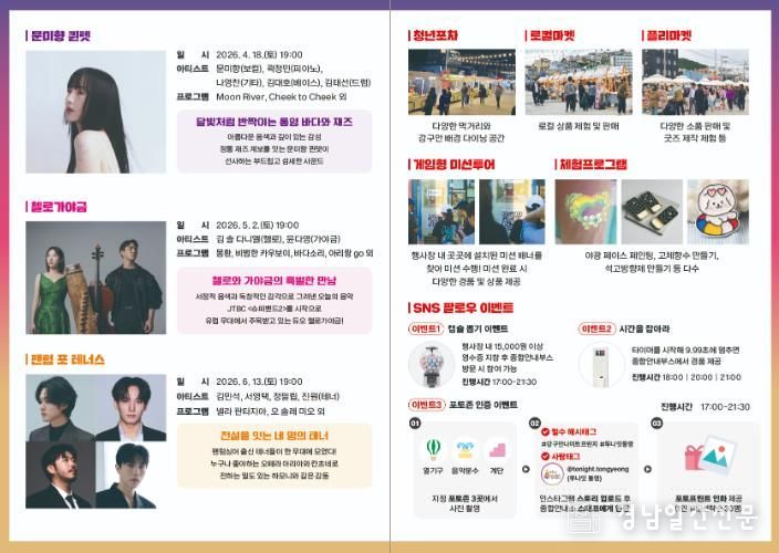 경남일간신문 | 통영시는 오는 5월 2일 강구안 해상무대 및 일원에서 '2026 강구안 나이트 프린지, ‘투나잇 통영 즐거울 樂’'두 번째 공연을 개최한다.