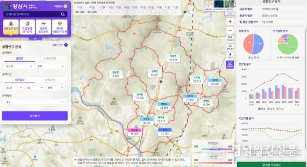 경남일간신문 | 양산시가 시민 누구나 지역 인구 흐름을 확인할 수 있는 ‘양산시 생활인구 분석 서비스’를 구축해 공개했다.