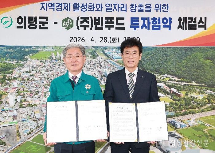경남일간신문 | 의령군은 지난 28일 군수실에서 ㈜빈푸드(대표 홍효선)와 투자협약(MOU)을 체결했다고 밝혔다.