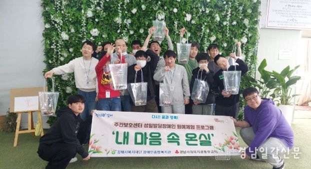 경남일간신문 | (재)김해시복지재단 김해시장애인종합복지관은 지난 4월 3일과 17일 양일간 주간보호센터 이용자를 대상으로 성인발달장애인 원예체험 프로그램 ‘내 마음 속 온실’을 진행했다고 밝혔다.