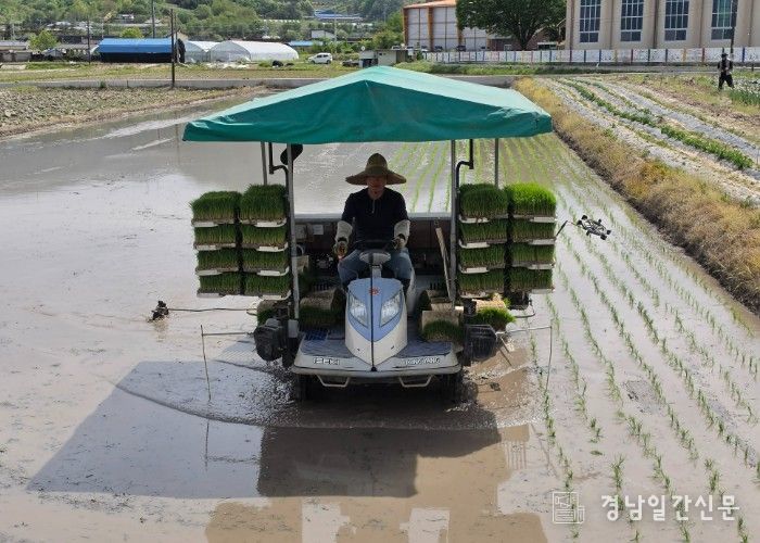 경남일간신문 | 거창군은 지난 28일 남하면 무촌리에서 조생종'빠르미'품종으로 2026년 첫 모내기를 실시했다고 밝혔다.