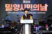 경남일간신문 | 경남 밀양시는 삼문동 야외공연장 일원에서 시민과 방문객 등 10,000여 명이 참석한 가운데 제30회 밀양 시민의 날 기념식 및 시민 한마당 축제를 성황리에 마무리했다고 18일 밝혔다. 이번 행사는 국제와이즈멘 밀양클럽이 주관해 읍·면·동 거리 퍼레이드를 시작으로 기념식, 시민 한마당 축제, 열린음악회, 불꽃놀이까지 다채로운 프로그램이 이어지며 시민의 자긍심과 화합을 다지는 축제의 장이 됐다. 기념식은 미래 세대의 주역인 밀양 청소년을 대표해 밀성고등학교 박해수·황윤준 학생의 시민헌장 낭독으로 시작됐으며, 제27회 밀양 시민대상은 문화 부문 김은민 극단메들리 대표, 산업 부문 조문수 한국카본 대표이사, 봉사 부문 손흥상 해심장학재단 이사장이 수상의 영예를 안았다. 또한 시군 통합 및 지방자치 30주년 기념 퍼포먼스를 통해 지난 30년간 밀양의 발전 여정을 되돌아보고, 눈부신 성장과 변화를 시민 모두가 함께 축하하는 뜻깊은 시간을 가졌다. 이후 열린 시민 한마당 축제에서는 국내 최고 수준의 밀양아리랑오케스트라의 연주와 가수 이기찬, 소프라노 심규연의 무대가 이어져 감동과 열기를 더했다