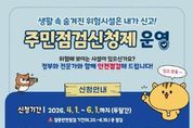 경남일간신문 | 고성군은 2026년 집중안전점검 기간(4월 20일~6월 19일) 동안 군민이 직접 참여하는'2026년 집중안전점검 주민점검신청제'를 운영한다고 밝혔다. '주민점검신청제'는 집중안전점검 과정에 군민이 직접 생활 속 위험요소를 조기에 발굴하여 점검신청을 할 수 있도록 마련됐으며, 안전점검이 필요한 시설물 등에 대하여 군민의 의격을 적극 수렴하여 사각지대 해소를 위한 제도이다. 특히 올해는 전년도보다 한층 더 활성화하여 안전취약계층 및 민생중심시설 등을 중점으로 추진하여 예방 중심의 안전관리체계를 강화하는 데 가장 큰 목적을 두고 있으며, 군민들의 적극적인 참여를 통해 생활 속 안전 사각지대를 해소하고 행정과 군민이 함께 만들어가는 예방 중심의 안전관리체계를 강화할 방침이다. 점검대상은 △공장시설 △공동주택 △숙박시설 △다중이용시설 △체육시설 등 행정안전부에서 지정한 20종 시설유형과 안전취약계층 및 민생중심시설 등으로 사회적 관심에 발맞추고 실생활과 밀접한 다양한 시설이 해당된다. 군민들은 읍면사무소를 방문하거나 안전신문고 앱, 포털을 통해 점검 시설물을 신청할 수 있으며, 접수된 사항