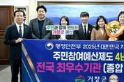 경남일간신문 | 거창군은 지난 16일 정부세종청사에서 행정안전부가 주최하는 2025년 대한민국 지방재정대상 시상식에서 주민참여예산제도 운영 4년 연속 전국 최우수기관으로 선정되어 장관 기관표창과 함께 재정 인센티브 5천만 원을 받았다. 행정안전부는 매년 전국 지방자치단체 243개를 대상으로 주민참여예산제도 성과평가를 통해 지자체의 건전한 재정 운용과 지방재정 민주성책임성투명성 평가해 광역·시· 군·구 별로 각 1개씩 총 4개 기관만을 최우수기관으로 선정하고 있다. 거창군은 2018년, 2021년 우수기관에 선정된 데 이어, 2022년부터 2025년까지 4년 연속 최우수기관으로 선정되는 성과를 거뒀으며, 이는 전국 군 단위 82개 지자체 가운데 최상위 수준의 운영 역량을 입증한 것이다. 특히 올해는 ‘공감과 성장-진화하는 거창형 주민참여예산’이라는 슬로건 아래, △찾아가는 주민 예산학교 미래세대(초 · 중 · 고 · 대학생) 확대 운영으로 미래세대의 참여 환경 조성 △‘모방과 경연’을 주제로 거창군만의 차별화된 제안사업 공모유형을 다양화해 창의적 행정문화 확산 △회의 진행보조자(퍼실리테이터)를 활용한 제안사