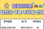경남일간신문 | 수려한 합천의 황강변을 따라 백리벚꽃길을 달리는 ‘25회 합천벚꽃마라톤대회가 오는 3월 29일 합천벚꽃마라톤 코스 일원에서 열린다. 합천군은 올해 관외 방문객 폭발적인 증가로 인해 행사를 부담없이 즐길 수 있도록 행사당일 합천군 공영주차장을 전면 무료 개방하여 주차편의를 제공할 계획이다. 무료 개방 주차장은 총 6개소, 266면 규모로,합천읍 공영주차장(합천리 668-19, 68면), 합천왕후시장 주차장(합천리 473-1, 68면), 농협군지부 앞 공영주차장(합천리 672-3, 14면), 합천약국사거리 공영주차장(합천리 673-5, 18면), 합천터미널 앞 공영주차장(합천리 397-4, 26면), 핫들 공영주차장(합천리 426-21, 72면)이 해당된다. 김윤철 합천군수는 “합천벚꽃마라톤행사를 즐긴 방문객에게 합천군의 좋은 이미지를 남길 수 있도록 쾌적한 주차 편의를 제공에 최선을 다하겠다”고 말했다 주차장 무료개방과 관련한 자세한 사항은 합천군 건설교통과 교통지도담당으로 문의하면 된다.