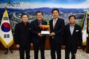 경남일간신문 | 합천축산업협동조합(조합장 김용욱)은 10일 합천군을 방문해 합천군 농업기술센터 신청사 개청을 축하하며, 축산 홍보 및 현장 교육에 활용될 한우 모형을 기증했다. 이번에 기증된 한우 모형은 관람객의 시각적 이해를 돕는 교육자료로서 해당 모형은 합천군농업기술센터 1층 홍보관에 상시 전시되어 농업인 교육 프로그램, 학생 견학 및 지역 축산문화 홍보에 폭넓게 사용될 예정이다. 김용욱 조합장은 “신청사의 새로운 출발을 축하하는 마음을 담아 준비한 기증품이 합천군 축산업 교육·홍보 역량 강화에 보탬이 되길 바란다.”며 “앞으로도 축산웅군인 합천 축산업 발전을 위해 협동조합 본연의 역할을 성실히 수행하겠다.”라고 전했다. 김윤철 합천군수는 “귀중한 전시 자료를 기증해 주신 합천축협에 깊은 감사를 드린다.”며 “방문객들이 축산업을 보다 친근하고 정확하게 이해할 수 있도록 다양한 교육 콘텐츠와 함께 적극적으로 활용하겠다.”고 밝혔다. 합천군은 이번 기증을 계기로 홍보관의 전시 콘텐츠가 한층 강화되어, 지역 농업·축산업의 가치와 중요성을 효과적으로 전달할 수 있을 것으로 기대하고 있다.