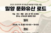 경남일간신문 | 밀양문화관광재단은 오는 11월 8일 오전 10시부터 오후 7시까지 예림서원과 선비문화체험관 일원에서 지역 무형유산의 가치를 시민과 함께 나누는 ‘밀양 문화유산 로드’를 개최한다고 13일 밝혔다. 이번 행사는 지난해 9월 경상남도 무형유산 공동체 종목으로 지정된 밀양아리랑을 중심으로 전통문화의 가치와 의미를 재조명하고, 시민과 관광객이 함께 어울려 즐길 수 있는 다채로운 프로그램으로 구성됐다. 프로그램은 개회식과 기조강연을 시작으로 학술 프로그램, 전통 공연, 전시·체험 등으로 이어진다. 특히 밀양아리랑 고음반과 축음기 전시, 전통놀이·공예 체험 등 참여형 콘텐츠를 통해 남녀노소 누구나 전통문화를 직접 체험하고 즐길 수 있도록 꾸며진다. 재단은 이번 행사를 통해 국가유산의 역사적 가치와 현대적 활용 가능성을 재조명하고, 공동체 중심의 전승 모델을 제시한다는 계획이다. 이치우 재단 대표이사는 “이번 행사는 지역 전통유산의 가치를 새롭게 발견하고 시민과 함께 공유하는 뜻깊은 시간이 될 것”이라며 “앞으로도 지역 무형유산이 일상에서 지속되고 다음 세대에 전해질 수 있도록 노력하