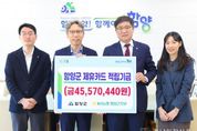 경남일간신문 | 함양군과 NH농협은행 함양군지부는 3월 23일 군청에서 법인카드 제휴 협약에 따른 적립금 전달식을 개최했다. 이날 전달식에는 진병영 함양군수와 윤외준 NH농협은행 함양군지부장, 김정대 함양군청 출장소장 등이 참석했으며, NH농협은행 함양군지부는 지난해 조성한 제휴카드 적립금 4,557만 원을 함양군에 전달했다. 이번에 전달된 제휴카드 적립금은 지난 한 해 동안 함양군청의 법인카드, 공무원 복지 카드, 보조금 카드 사용 금액의 0.1~1%를 적립해 모은 것이다. 윤외준 지부장은 “이번 적립금 전달을 통해 함양군의 지역발전에 이바지할 수 있어 매우 뜻깊게 생각한다”라며 “앞으로도 지역사회와의 협력을 통해 상생하는 농협의 역할을 다하겠다”라고 말했다. 함양군 관계자는 “다양한 협력 사업을 통해 지역발전에 함께해 주시는 NH농협은행 함양군지부에 감사드린다”라며 “전달받은 적립금은 군민 복지 향상과 주요 정책 추진 재원으로 활용할 계획”이라고 밝혔다. 한편, 함양군은 법인카드 사용 활성화를 통해 예산 집행의 투명성을 높이고, 적립된 기금을 세입예산에 편성해 군민 복지와 편익 증진