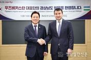 경남일간신문 | 경상남도는 10일 오전 도청에서 진행된 우즈베키스탄 고위급 대표단 접견에서 잠시드 압두하키모비치 호자예프(Jamshid Abduxakimovich Khodjaev) 우즈벡 경제부총리의 공동 산업단지 조성 제안에 ‘실무 협의 추진’으로 화답했다. 경남도는 이번 논의를 계기로 우즈베키스탄과 경제‧산업 분야 협력을 위한 구체적인 첫발을 내딛게 됐으며, 이는 양 지역이 단순 교류를 넘어 신(新) 실크로드 경제권을 공동 개척하는 전략적 동반자 관계를 구축하는 중요한 기반이 될 것으로 기대된다. 이날 환담은 지난 9월 타슈켄트에서의 만남에 이은 두 번째 만남으로, 양측은 고속철도 등 경제‧산업 분야 구체적 협력 논의를 진전시켰다. 호자예프 경제부총리는 환담에서 “경남과 우즈벡 간 지방정부 협력이 매우 유익하고 실용적이라 생각하며, 이번 방문은 협력을 더욱 돈독히 하려는 의지를 보여주는 중요한 신호”라고 강조했다. 이어 부총리는 “양측이 구체적인 사업 계획과 협력 계획을 진행하기를 바라며, 우즈베키스탄 내에 경남 기업들을 위한 공동 산업단지 조성을 제안한다”고 공식적으로 밝혔다. 아울러, 우주항