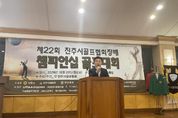경남일간신문 | ‘제22회 진주시골프협회장배 챔피언십 골프대회’가 20일 진주컨트리클럽에서 100여 명의 선수 및 관계자들이 참가한 가운데 성황리에 개최됐다. 진주시골프협회가 주최·주관하고 진주시와 진주시체육회가 후원한 이번 대회는 골프 종목의 저변 확대와 골프 동호인들의 화합의 장을 마련하기 위해 열렸다. 경기는 학생선수와 프로선수를 제외한 진주시 거주 핸디 12 이내의 순수 아마추어 골퍼를 대상으로 남자선수권부와 여자선수권부로 나뉘어 스트로크 플레이 방식으로 진행됐으며 경기 결과에 따라 남자선수권부는 5위까지 여자선수권부는 3위까지 시상이 이뤄졌다. 진주시 관계자는 “협회장배 챔피언십 골프대회가 성황리에 개최된 것을 축하한다”며, “이번 대회를 통해 동호인 간의 우의를 돈독히 하고, 골프의 매력을 시민들에게 널리 알리는 기회가 되기를 바란다”고 말했다.
