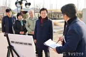 경남일간신문 | 진주시는 소망진산 유등공원과 망경공원을 연결하는 ‘보행육교’ 설치 공사와 기존 산책로를 개선한 ‘숲속 산책로’ 설치 공사를 마무리한 가운데 29일 조규일 진주시장이 현장을 방문해 공사의 완료 상황을 점검했다. 이번에 신설된 ‘보행육교’는 망경동 사거리에서 희망교 방면의 망경로 상부에 설치된 길이 40m의 철골 구조물로, 알루미늄 타공패널과 조명을 활용해 주야간 물결무늬 패턴을 감상할 수 있도록 설치됐다. 엘리베이터도 함께 설치돼 공원에 대한 접근성을 높이고, 시민 모두가 편리하게 이용할 수 있도록 했으며, 소망진산 유등공원과 망경공원을 직접 연결해 두 공원 간의 이동이 더욱 편리해졌다. 이와 함께 ‘보행육교’와 ‘봉수대’를 연결하는 기존 노후 산책로를 정비해 남강의 수려한 자연경관을 즐기며 걸을 수 있는 ‘숲속 산책로’를 조성했다. 총연장 560m 구간에 ‘스틸 그레이팅’ 구조를 적용해 개방감과 내구성을 강화했으며, 주야간 관계없이 안전하게 이용할 수 있도록 야간 조명도 설치했다. 한편, 진주시의 ‘망경동 일원 보행육교·산책로·전망대 조성사업’은 설계공모 사업으로, 이