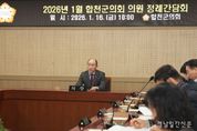 경남일간신문 | 합천군의회는 지난 16일, 합천군의회 간담회장에서 병오년 새해 첫 번째 합천군의회 의원 정례간담회를 개최했다고 전했다. 군의원 및 국장· 소장 · 담당관과 관계 부서장 등 20여명이 참석한 이 날 간담회에서는 통합돌봄 TF 구성·운영, 2026년 열린 관광지 조성사업 공모사업 선정 등 향후 주요 군정 추진현황에 관한 부서장의 보고와 함께 제296회 합천군의회 임시회 운영과 2025 회계연도 세입세출결산 검사위원 선임을 위한 협의 등을 논의했다고 관계자는 밝혔다. 이날 정례간담회에서 정봉훈 의장은 “전 의원과 공직자께서는 병오년 새해, 군민을 위한 의정과 군정 실현을 위해 ‘2026년도 군민과의 대화’의 업무추진에 만전을 기하여, 군민이 더욱 살기 좋은 합천군으로 이끌어 주실 것을 당부한다.”고 전했다. 한편 합천군의회는 2025회계연도 세입세출예산 결산검사위원의 선임과 각종 조례안 동의안 등의 심의 · 의결 등을 위하여 오는 2월 5일부터 2월 10일까지 6일간의 일정으로 제296회 합천군의회 임시회를 개회할 예정이다.