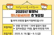 경남일간신문 | 경남 밀양시는 오는 9월 5일까지 청년층의 주거비 부담 완화와 안정적인 정착 지원을 위한 ‘2025년 청년 월세 지원사업’ 대상자 15명을 추가 모집한다고 18일 밝혔다. 이번 사업은 청년들의 안정적인 주거 생활을 돕고 지역 정주 여건을 개선하기 위해 추진된다. 올해 상반기에는 25명이 지원을 받았으며, 하반기 추가 선정된 청년에게는 월 20만원, 연간 최대 240만원을 지원한다. 지원 대상은 밀양시에 주소를 둔 만 18세 이상 39세 이하 무주택 세대주 청년으로, 기준중위소득 60% 초과 150% 이하이면서 임차보증금 1억원·월세 60만원 이하 주택에 거주하는 경우 신청할 수 있다. 신청을 희망하는 청년은 시청 인구정책담당관을 방문하거나 ‘경남바로서비스’를 통해 온라인으로 접수하면 된다. 자세한 내용은 시 대표 누리집 새소식란을 확인하거나 인구정책담당관으로 문의하면 된다. 아울러 시는 지난해 월세 지원을 받은 청년에게 올해 1년간 월 20만원을 추가 지원하는 ‘청년 월세 플러스 지원사업’도 함께 운영하고 있다. 양기규 인구정책담당관은 “월세 지원사업이 청년들의 주거비
