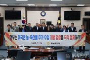 경남일간신문 | 창녕군의회는 지난 29일 정부가 추진 중인 미국산 농·축산물 추가 개방 협상에 대해 깊은 우려를 표하며, 이를 즉각 중단할 것을 촉구하는 성명서를 채택했다. 창녕군의회는 성명서를 통해 “정부가 한미 관세협상 종료 시한을 앞두고 협상 카드로 사과, 쌀, 소고기 등 농축산물 시장을 추가 개방하려는 움직임을 보이고 있다”며 “이는 전국 제일의 마늘·양파 주산지이자 대표적인 농축산 지역인 창녕군의 근간을 흔드는 중대한 사안”이라고 지적했다. 특히, 이번 추가 개방 요구 품목들이 지역의 주요 농축산물과 직접적으로 연관되어 있어, 협상이 타결될 경우 ▲한우 축산농가 기반 붕괴 ▲국내 쌀 시장 초토화 ▲지역 농산물 가격 폭락 등 막대한 피해가 불가피할 것이라고 경고했다. 실제로 창녕군은 2008년 미국산 쇠고기 협상 타결 당시, 국내 최대 규모의 우시장이 얼어붙고 소값 폭락으로 한우농가가 엄청난 시름에 잠겼던 뼈아픈 경험이 있다. 창녕군의회는 "4년 연속 적자로 이미 어려움을 겪고 있는 한우농가에 추가 개방은 생존 기반을 뿌리째 뽑는 비극을 초래할 것"이라고 호소했다. 이동훈 산업건설위원장은