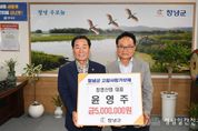 경남일간신문 | 창녕군은 지난 30일 윤영주 창영산업 대표가 고향사랑기부제에 동참해 기부금 500만 원을 기탁했다고 밝혔다. 윤영주 대표는 창녕군 장마면 출신으로, 최근 기록적인 폭우로 어려움을 겪고 있는 고향 소식을 접하고 도움이 됐으면 하는 마음에서 기부를 결심했다. 윤 대표는 “얼마 전 쏟아진 폭우로 고향에 피해가 컸다는 소식을 듣고 마음이 무거웠다”며 “이번 기부가 내 고향 창녕이 다시 활기를 되찾는 데 작게나마 힘이 됐으면 한다”고 전했다. 성낙인 창녕군수는 “어려운 경제 여건 속에서도 고향을 위해 큰 결심을 해 주신 만큼 그 의미가 더욱 크고 깊이 다가온다”며, “기탁해 주신 고향사랑기부금은 지역 주민의 복지 증진과 정주 여건 개선 등 군민이 체감할 수 있는 분야에 소중히 사용될 것”이라고 전했다. 한편, 창영산업은 경남 창원시에 본사를 둔 기계부품 가공 및 설비 제작 전문 기업으로, 정밀한 기술력과 안정적인 품질관리로 지역 산업 현장에서 신뢰를 받고 있다. 윤 대표는 지역사회와 함께 성장하는 경영 철학을 바탕으로, 산업 경쟁력 강화와 일자리 창출에 힘써온 모범적인 기업인