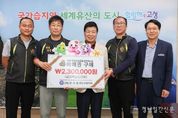 경남일간신문 | 고성문화관광재단은 고성군청 환경공무직회가'2025 경남고성공룡세계엑스포'의 성공적인 개최를 위해 9월 17일 120만 원 상당의 엑스포 예매권을 구매했다고 밝혔다. 구재성 부회장은 “환경공무직회는 꾸준히 고성군에 기부를 해왔다며, 고성군 대표 축제인 공룡엑스포에 많은 방문객이 왔으면 하는 마음에서 입장권 구매를 결정하게 됐다”라고 말했다. 고성문화관광재단은 10월 1일부터 11월 9일까지 40일간 진행되는 '2025 경남고성공룡세계엑스포'의 예매권 판매를 지난 5월 1일부터 시작했다. 사전 예매권은 행사 시작 하루 전인 9월 30일까지 구매할 수 있으며, 대인은 14,000원, 소인은 7,000원에 할인 구매할 수 있다. 올해 엑스포는 “공룡과 함께 춤을”이라는 주제로, 관람객의 상상력을 자극하는 다양한 체험형 콘텐츠로 채워진다. 국내 최초로 익룡이 나는 모습을 실제로 볼 수 있는 ‘익룡이 날다’, 폐품의 재활용 및 환경보존의 메시지를 전달하는 ‘정크아트’, 꽃으로 꾸며진 대형 공룡 포토존 ‘플라워사우루스’, 중국 최고의 기예단인 서커스와 화려한 불꽃쇼, 온 가족이 함께