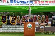경남일간신문 | 밀양시 깻잎연합회는 21일 산외면 체육공원에서 깻잎 재배 농업인들의 친목을 도모하고 농업정보 교류를 위한 ‘제19회 밀양시 깻잎 가족 한마음 체육대회’를 성황리에 개최했다고 밝혔다. 이번 체육대회는 밀양시 깻잎연합회가 주최·주관하고, 밀양시, 밀양시의회, 농촌진흥청 국립식량과학원, NH농협 밀양시지부, 밀양농협, 동밀양농협, 부북농협, 청도농협, 한국청과, 중앙청과, 서울청과, 동화청과 등의 유통 관계기관이 후원했다. 이날 행사에는 안병구 시장, 박상웅 국회의원, 허홍 시의회 의장과 깻잎 재배 농가 및 가족, 관광객 등 600여 명이 참여했으며, 명랑운동회, 노래자랑, 경품추첨 등 다양한 행사가 이어져 농업과 공동체의 소중함을 되새기는 화합의 시간을 가졌다. 안병구 시장은 “밀양 깻잎은 전국 최고의 생산량을 자랑하는 명품 농산물로, 지역 경제와 농업 소득 증대에 크게 기여하고 있다”라며 “밀양시는 앞으로도 전문 농업인 육성, 스마트 농업 기반 확대, 유통 경쟁력 강화 등 미래지향적 농정 추진을 통해 ‘튼튼한 농업, 활기찬 밀양’ 실현에 최선을 다하겠다”라고 밝혔다. 한편 밀양 깻잎은