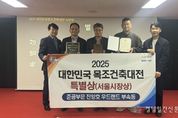 경남일간신문 | 진주시 ‘진양호 우드랜드 부속건물’이 지난 5일 서울에너지 드림센터에서 열린 ‘2025 대한민국 목조건축대전’에서 ‘특별상’을 수상했다. ‘대한민국 목조건축대전’은 산림청이 주최하고 한국목조건축협회가 주관해 2003년 제정된 우리나라 대표 목조건축 공모전으로, 목조건축의 우수성과 활용 가능성을 탐구하고 친환경 목재산업을 활성화하기 위해 시행하고 있다. 수상작인 ‘진양호 우드랜드 부속건물’은 목구조로 길이 30m 장방형의 단층 건물이다. 긴 형태의 평면이 구조적 안정성과 시각적 통일감을 확보하고, 길이 방향을 따라 배치된 양면창이 개방감을 제공해 내부와 외부, 본 건물과 부속된 사이의 흐름을 자연스럽게 이어주고 있다. 최근 진주시는 건축분야 최고의 권위를 가진 ‘2025 한국건축문화대상’에서 목조건축 활성화 정책이 높은 평가를 받으면서 건축문화진흥 부문에서 ‘대통령상’을 수상하는 등 ‘목조건축 대표도시’로 각광받고 있다. 특히 ‘목조건축대전’에서 지난 2021년부터 2025년까지 5년 연속 수상하는 쾌거를 이뤘다. 이는 전국 지방자치단체 중 유일한 사례로, 목조건축 정책의 일관성과 성
