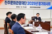 경남일간신문 | (재)진주문화관광재단은 지난 19일 진주시청 5층 상황실에서 조규일 이사장을 비롯한 임원들이 참석한 가운데 ‘2025년 정기이사회’를 개최했다. 이번 이사회에서는 ▲2025년 주요업무 추진실적 ▲2026년 사업계획 보고 ▲2026년 재단 예산편성안 ▲기금운용 계획안 등이 의결됐으며, 진주시의 문화예술과 관광산업, 그리고 재단 발전을 위한 다양한 의견들이 논의됐다. 2026년 진주문화관광재단의 예산은 150억 원 규모이며, 기금 지원사업을 비롯한 고유목적사업 20개와 2026 국가유산미디어아트를 비롯한 7개의 위탁사업을 추진할 계획이다. 특히 내년에는 ‘빛 담은 문화도시 진주’ 2년 차를 맞아 실크와 유등, 캐릭터 등 대표 콘텐츠의 활성화와 문화상품의 홍보마케팅 지원 등 문화콘텐츠 고도화 사업을 추진하고, 관광객 유치를 위한 상품개발과 홍보마케팅을 강화해 나갈 예정이다. 조규일 이사장은 “진주문화관광재단은 21년 설립 이후 4년 동안 진주를 문화예술로 행복하고, 관광으로 빛나는 부강한 도시로 만들기 위해 노력해 많은 성과를 이뤄냈다”며, “2026년에도 시민을 위한 문화관광 전문기관으로서 지역문화