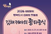 경남일간신문 | 김해시는 ‘2025 김해 제야의 종 타종식’을 오는 31일 오후 10시40분부터 2026년 1월 1일 0시 30분까지 김해시민의 종 일원에서 개최한다고 26일 밝혔다. 기존 의례 중심의 타종에서 벗어나 시민 참여와 지역성을 핵심 가치로 한 체험형·참여형 새해맞이 행사로 새롭게 구성한 것이 특징이다. 특히 타종인사 상당수를 공모로 선정한 30명의 시민대표로 구성해 새해의 첫 울림을 시민 스스로 만들어 가는 의미 있는 행사로 마련했다. 시민들은 타종뿐 아니라 시민 송년사 영상, 새해소망 메시지 참여 등으로 행사 전반에 직접 참여한다. 공연 프로그램도 김해의 정체성을 살린 지역 예술인 중심 무대로 꾸며진다. 우리소리예술단의 전통공연을 시작으로 전자바이올린, 혼성그룹 공연이 어우러진 제야음악회를 비롯해 시립합창단의 수준 높은 공연과 농악 피날레 공연으로 새해의 흥을 더할 예정이다. 또 공연장 곳곳에서 남녀노소 누구나 즐길 수 있는 체험형 부대행사가 운영된다. 새해 소망을 적어 거는 소망지, 1년 뒤 전달되는 느린 우체통, 전통놀이 체험존, 포토존 등은
