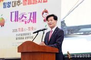 경남일간신문 | 경남 밀양시는 지난 8일부터 9일까지 선샤인 밀양 테마파크와 얼음골 공영주차장 일원에서 열린 ‘2025 밀양 대추&얼음골사과 대축제’가 성황리에 막을 내렸다고 10일 밝혔다. 밀양의 대표 농산물인 대추와 얼음골사과를 주제로 열린 이번 축제는, 지역주민과 방문객들에게 특별한 경험을 선사하며 밀양의 농산물 브랜드 가치를 한층 높였다. 이번 축제는 밀양대추&얼음골사과대축제 추진위원회가 주최·주관했다. 대추와 얼음골사과의 수확철을 맞아 농산물의 우수성을 널리 알리고 시민과 관광객들에게 품질 좋고 합리적인 가격의 농산물을 선보이기 위해 개최됐으며, 이틀간 1만 5,000여 명이 방문해 축제 분위기를 즐겼다. 개막식에는 안병구 시장, 박상웅 국회의원, 허홍 밀양시의회 의장, 도·시의원, 농협 밀양시지부장, 밀양농협 조합장 등 많은 기관·사회단체장들이 참석해 행사를 축하하고 농업인들을 격려했다. 축제 기간 진행된 사과·대추 경매, 사과 예쁘게 깍기, 대추·사과 떡치기 등 다양한 프로그램은 참가자들에게 밀양 농산물의 우수성을 직접 체험할 수 있는 기회를 제공했다. 특히,