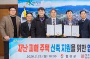 경남일간신문 | 합천군은 23일 군청 군수실에서 합천지역건축사회와 재난으로 피해를 입은 주민들의 주거 안정을 지원하기 위한 ‘재난 피해주택 신축 지원 업무협약’을 체결했다. 이번 협약은 재난 피해주택 신축 과정에서 발생할 수 있는 주민들의 행정적 불편과 경제적 부담을 줄이고, 보다 안전하고 체계적인 주택 복구를 지원하기 위해 마련됐다. 협약에 따라 합천군은 재난 피해주민이 주택을 신축할 경우 지원받을 수 있는 설계·감리비 감면 내용을 안내하고, 건축 인허가 등 관련 행정절차를 신속히 처리해 주택 복구가 원활히 진행될 수 있도록 적극 지원하기로 했다. 합천지역건축사회는 피해주택 신축 지원에 참여할 건축사 인력풀을 구성·관리해 합천군에 제공하고, 주택 신축 전 과정에서 기술 상담과 현장 점검을 지원해 안전한 주택 건립을 돕기로 했다. 또한 재난 피해주택 신축 대상자에게 설계·감리비를 50% 수준으로 감면해 실질적인 부담 경감에 나서기로 했다. 김윤철 합천군수는 “이번 업무협약은 재난 피해주민들이 하루빨리 안정된 보금자리로 돌아갈 수 있도록 행정과 전문가가 함께 힘을 모은 결과”라며 “앞으로도 민·관 협