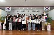 경남일간신문 | 재단법인 아천문화교류재단(ACEF)이 주최-주관한 '제12회 아천효문화예술제’가 11월 1일 오후3시 아천문화교류센터에서 시상식이 개최됐다. 이날 행사에는 부모사랑 나라사랑의 올바른 가치관을 심어주기 위해 문화예술 부문의 우수한 인재들을 발굴 시상하고 올해로 12회를 맞았다. 시상식은 이승훈의 사회로 식전행사에 노 오케스트라의 연주를 시작으로 개회식, 국민의례등의 순서로 진행되었으며, 재단법인 아천문화교류재단 이사장인 성민스님은 인사말을 통하여 로마 제국시대의 철학자, 정치가, 작가, 그리고 스토아 철학의 대표인물인 루키우스 안나이우스 세네카의 말을 빌어서 인생은 철학이고, 철학은 삶이라고 하면서 평안속에서 행동으로 옮기는 삶이 진정으로 미래를 꿈꾸는 삶이라고 이야기하면서 수상자분들의 축하의 말씀과 더블어 그들의 삶이 희망과 꿈이 넘치기를 믿는다고 피력했다. 수상과 관련, 최고상인 국회의장상에는 고봉국님, 특별상인 문화체육관광부장관상에는 목포애향중학교 송은유학생, 학생부종합대상에는 한밭여자중학교 이인혜학생, 서울특별시장상에는 정호겸, 권수지님. 경기도지사상에는 박상우, 윤세화님, 인천시장상에는 박지선님