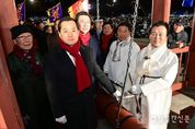 경남일간신문 | 진주시가 지난 12월 31일 밤 진주성 호국종각 일원에서 ‘2025 제야의 종 타종 행사’를 성황리에 개최하고, 시민과 함께 희망찬 2026년 새해를 맞이했다. 이번 행사는 한 해의 끝자락에서 시민이 함께 모여 지난 시간을 되돌아보고, 새해의 소망과 다짐을 나누는 진주시 대표 새해맞이 행사로, 호국정신이 살아 숨 쉬는 진주성에서 진행돼 ‘송구영신(送舊迎新)’의 의미를 더했다. 행사에 앞서 진행된 식전 공연에서는 ▲문화예술그룹 온터의 대북 공연 ▲스트릿댄스팀 심장박동의 공연 ▲초청가수 디셈버 공연 ▲2025 진주가인가요제 대상 수상자 황인아 축하 공연 ▲진주레이디스싱어즈의 합창곡 ‘케데헌 골든’ 무대 ▲LED 트론댄스 공연 등이 펼쳐지며 행사의 분위기를 고조시켰다. 본행사는 새해의 염원을 담은 ‘호국의 종 파수의식’과 2026년 진주시 사자성어인 ‘만사대길(萬事大吉)’을 주제로 한 휘호 퍼포먼스가 진행됐다. 서예가 우제 강봉준 선생이 큰 붓으로 힘차고 웅장하게 휘호를 완성했으며, 이후 조규일 진주시장을 비롯해 박대출·강민국 국회의원, 백승흥 진주시의회 의장, 학생 대표 등 진주 시민 6명이 함께