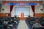 경남일간신문 | 사천시는 2일 오전 10시 시청 대강당에서 박동식 사천시장을 비롯해 김제홍 부시장, 국·소장 및 전 직원이 참석한 가운데 2026년 병오년 시무식을 개최했다. 이날 시무식은 시정 홍보영상 시청, 유공 공무원 표창 수여, 신년사 순으로 진행됐으며, 공식 행사에 앞서 2025년 혁신주니어보드 최우수팀의 이지연 주무관이 ‘MZ의 시선에서, 소소하고 확실한 혁신’을 주제로 조직문화와 일하는 방식 개선에 대한 아이디어를 제시해 시무식 분위기에 변화를 더했다. 특히, ▲글로벌 우주항공복합도시 도약 ▲머무는 해양·문화 관광도시 완성 ▲민생경제 회복 및 지역상권 보호 ▲교통·정주환경 개선과 시민 안전 강화 ▲아이부터 어르신까지 행복한 복지도시 조성 등 올해 시정 운영의 5대 중점 과제를 제시했다. 유공 공무원 표창 수여식에서는 국무총리 표창(박민경, 박현아, 배현기, 김미경)을 비롯해 행정안전부장관 표창(강영욱,하동훈), 보건복지부장관 표창(유재희) 경상남도지사 표창(조인영, 이현진, 강선미, 박예슬, 최재형, 김수지) 등 총 13명의 직원이 성실한 공직 수행의 공로를 인정받아 수상의 영예를 안았다. &nbs