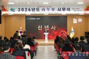 경남일간신문 | 고성군은 1월 2일, 군청 5층 대회의실에서 2026년도 시무식을 열고 새해 군정 운영의 힘찬 출발을 알렸다. 이날 시무식은 국민의례를 시작으로 반부패·청렴 선서, 시상, 군수 신년사, 직원과의 신년인사 순으로 진행됐다. 시무식에서는 지난 한 해 군정 발전에 기여한 군민과 직원에 대한 시상도 이어졌다. 총 53명에 대한 각 분야 표창이 진행됐고, 지역 안전과 치안 확립에 기여한 유관 기관에 대한 감사의 뜻도 함께 전했다. 수상자들에게는 큰 박수로 축하를 전하며, 지역사회와 현장을 지켜 온 노력에 감사를 표했다. 신년사에서는 지난해 주요 성과를 토대로 ‘변화의 전환점’을 강조했다. KTX고성역세권 투자선도지구사업 선정과 자란도 관광지 지정 승인, 국가지질공원 후보지 선정 등 미래 성장 기반을 다졌고, 생활SOC 확충과 방문스포츠 유치 성과도 함께 소개했다. 고성군은 2026년 군정 방향으로 ‘동심동덕(同心同德)’의 자세를 바탕으로 군민 행복을 최우선 가치로 삼고, 복지·생활 지원 강화와 투자·정주 기반 확충, 해양관광도시 도약을 본격 추진할 방침이다. 통합돌봄 체계 구축, 출산·육아 지원 강화,