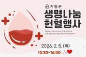 경남일간신문 | 거창군은 동절기 한파와 학생 방학 기간이 겹치며 전국적으로 혈액 수급에 어려움이 지속되고 있는 가운데, 헌혈 참여를 독려하기 위해 ‘사랑의 헌혈 행사’를 실시한다고 28일 밝혔다. 이번 행사는 오는 2월 5일 오전 10시 30분부터 거창군청 앞 로터리에서 열리며, 대한적십자사 경남혈액원 헌혈버스 2대가 현장을 방문할 예정이다. 헌혈은 만 16세 이상 만 69세 이하(남성 50kg, 여성 45kg 이상)의 건강한 군민이라면 누구나 참여할 수 있다. 다만 만 65세 이상은 60~64세 사이 헌혈 경험이 있는 경우에만 가능하다. 헌혈 참여시에는 신분증을 지참해야 하며, 헌혈 후에는 소정의 기념품과 헌혈증서가 제공된다. 2026년 헌혈 일정은 거창군 보건소 누리집을 통해 확인 할 수 있으며, 군은 더 많은 군민이 헌혈에 동참할 수 있도록 지속적인 안내와 홍보를 이어갈 예정이다. 거창군 관계자는 “추운 날씨 속에서도 작은 용기가 누군가의 생명을 살릴 수 있다”며 “군민 여러분의 따듯한 관심과 헌혈 참여를 부탁드린다”고 말했다. 한편, 거창군은 지난해